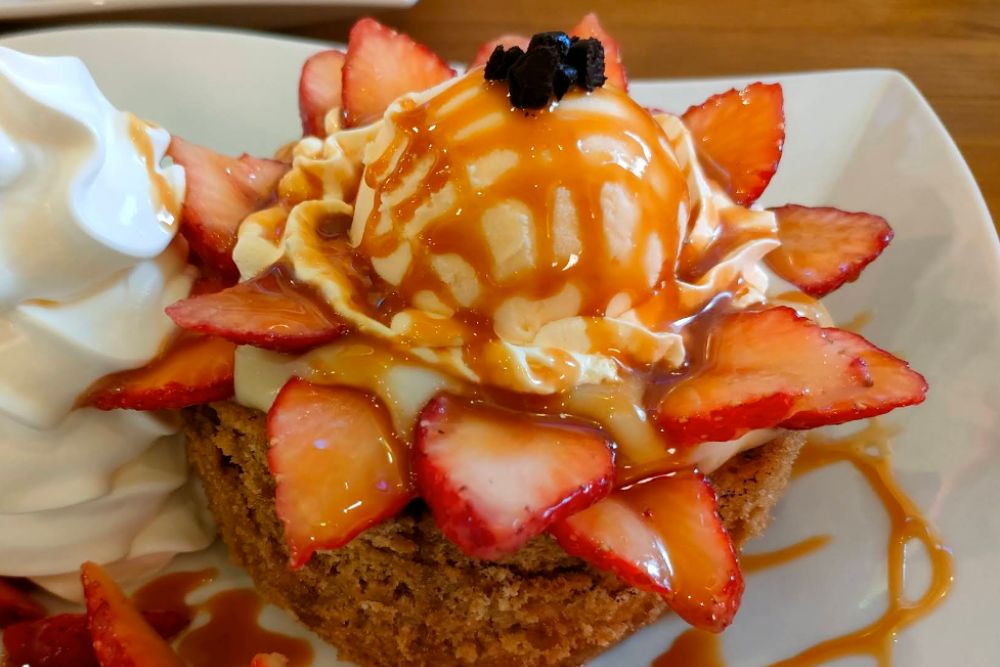 名物のパンケーキは、ほのかな甘みとしっとり感が特長の魔法のパンケーキで、どこか懐かしい味わいが広がります。